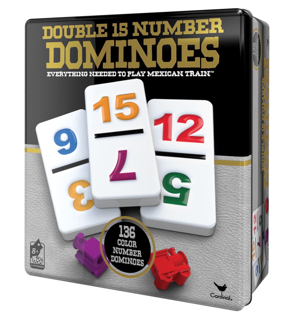 Cardinal Games Double 15 Number Dominoes in Storage Tin