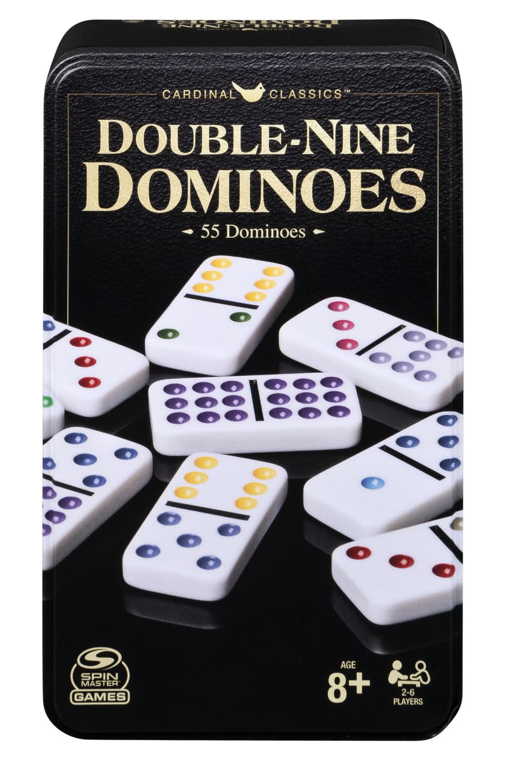 Spin Master Double Nine Dominoes Set in Storage Tin For Families and Kids Ages 8+ (55 ct)