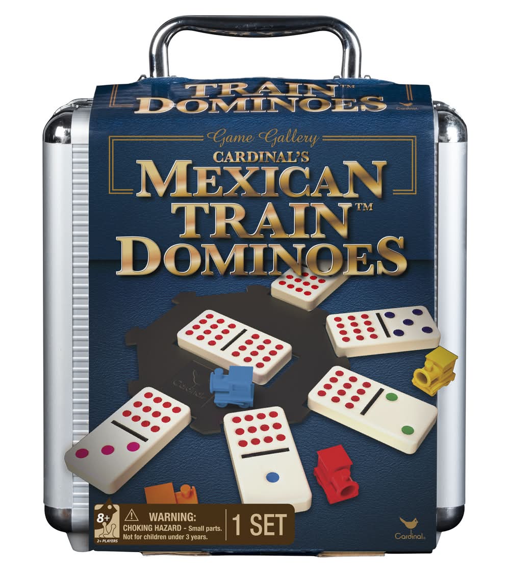 Cardinal Mexican Train Dominoes Game in Aluminum Carry Case For Adults and Kids Ages 8 and Up