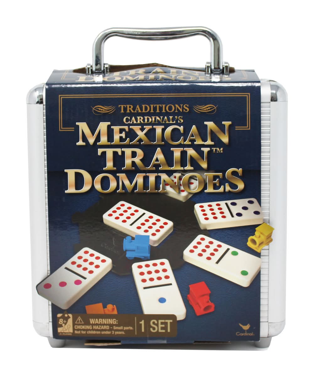 Cardinal Mexican Train Dominoes Game in Aluminum Carry Case For Families and Kids Ages 8 and Up