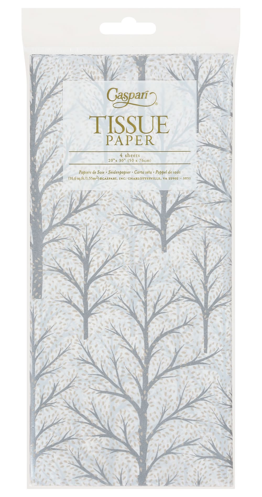Caspari Winter Trees Tissue Paper, 20x30 in, White-Silver (4 ct)