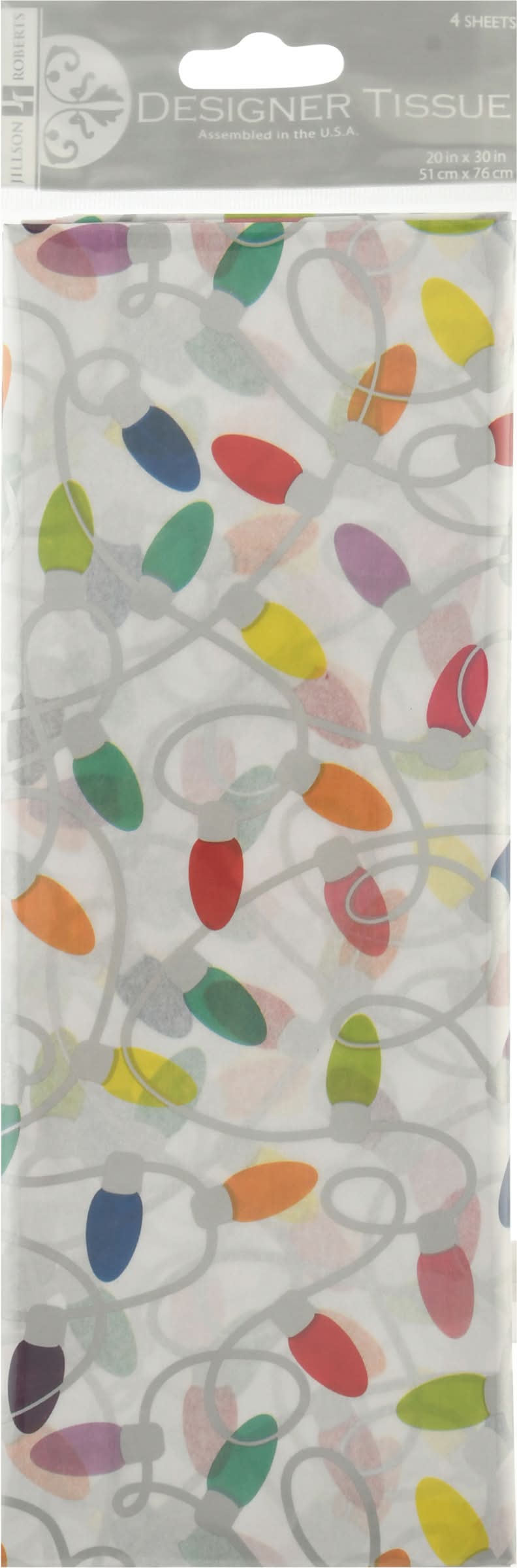 Jillson Roberts Christmas Lights Printed Designer Tissue, White (4 ct)