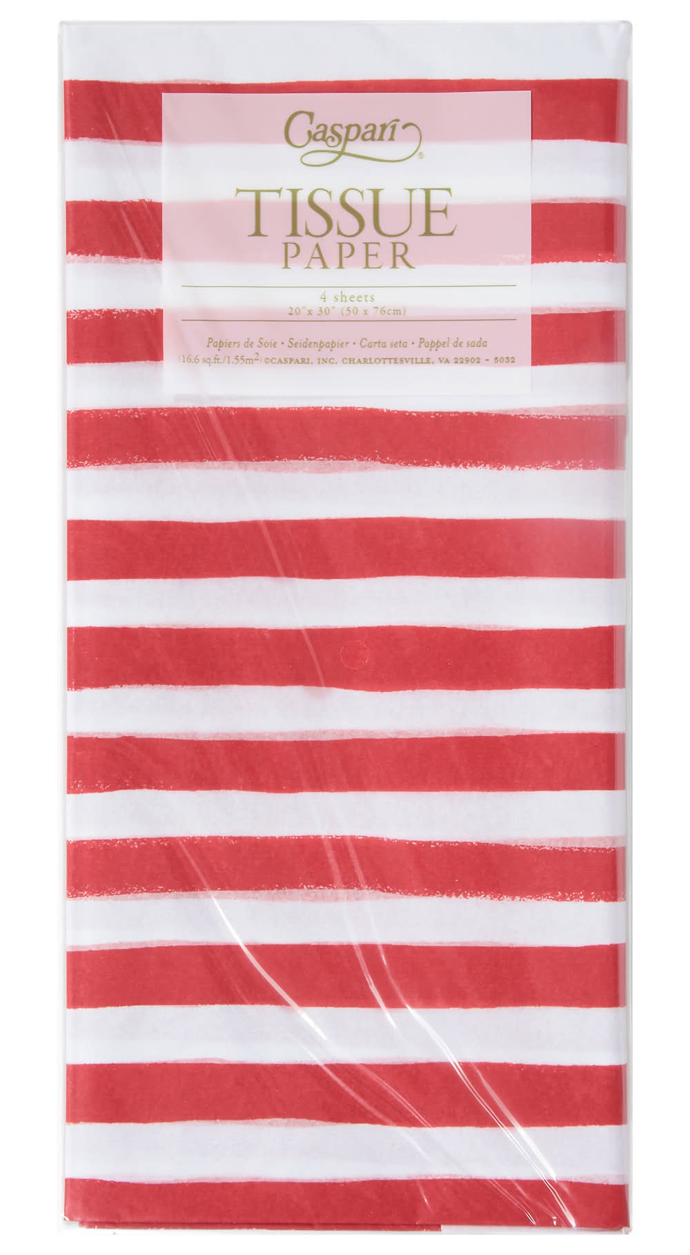 Caspari Painted Stripe Tissue Paper, 20x30 in, Red/White (4 ct)