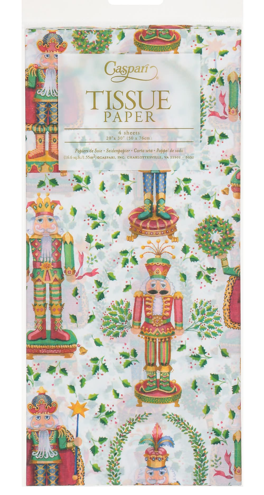 Caspari Nutcracker Christmas Tissue Papers, 20x30 in, White (4 ct)