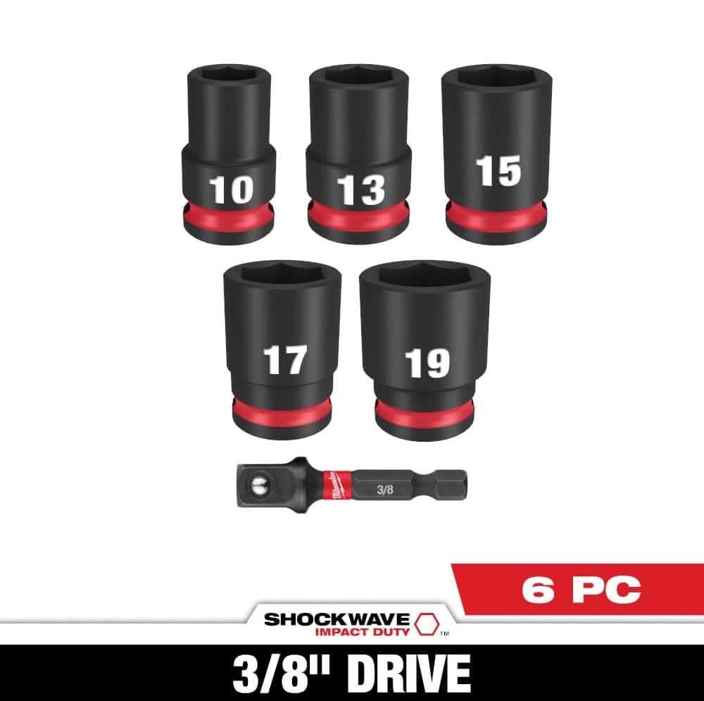 Milwaukee Drive Metric Standard 6 Point Impact Socket Set, 3/8 In (6 pack)
