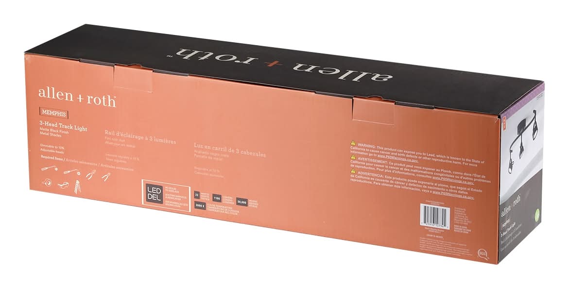 allen + roth Memphis 3 Light Integrated Traditional Track Bar Set, 27 in, Matte Black