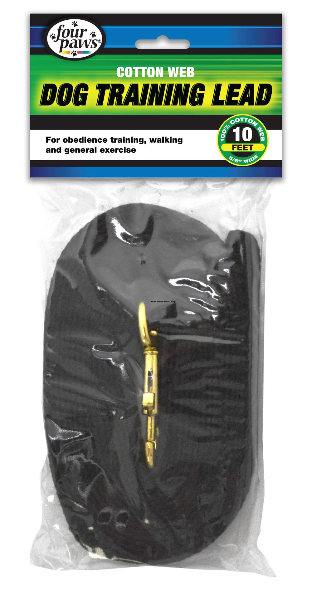 Four Paws Cotton Web Dog Training Lead, 30 ft, Black