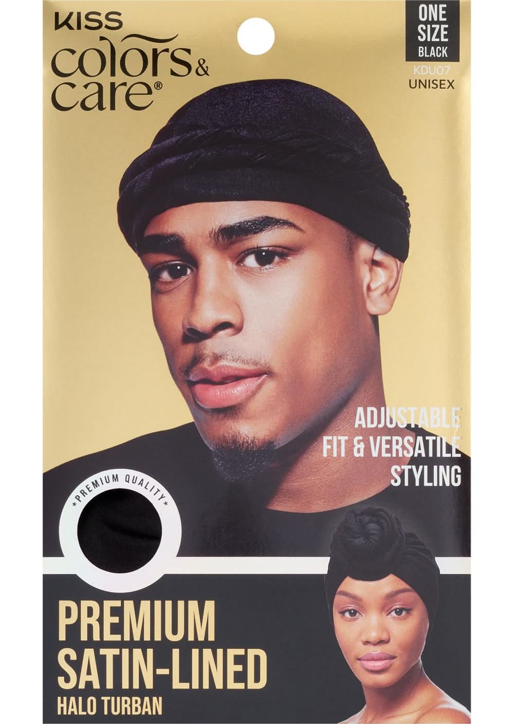 KISS Colors & Care Premium Satin-Lined Halo Turban, OS, Black