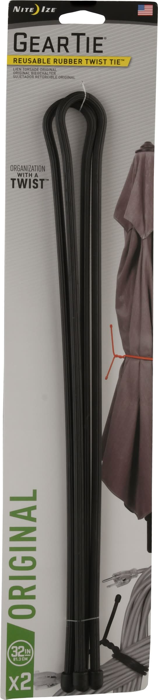 Nite Ize Reusable Rubber Twist Gear Tie, 12 in, Black (2 ct)
