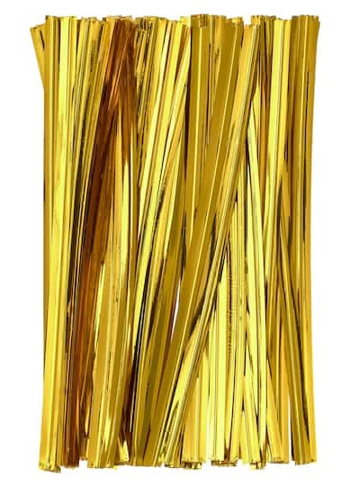 Celebrate It Twist Ties, 4" x 0.125", Gold (50 ct)