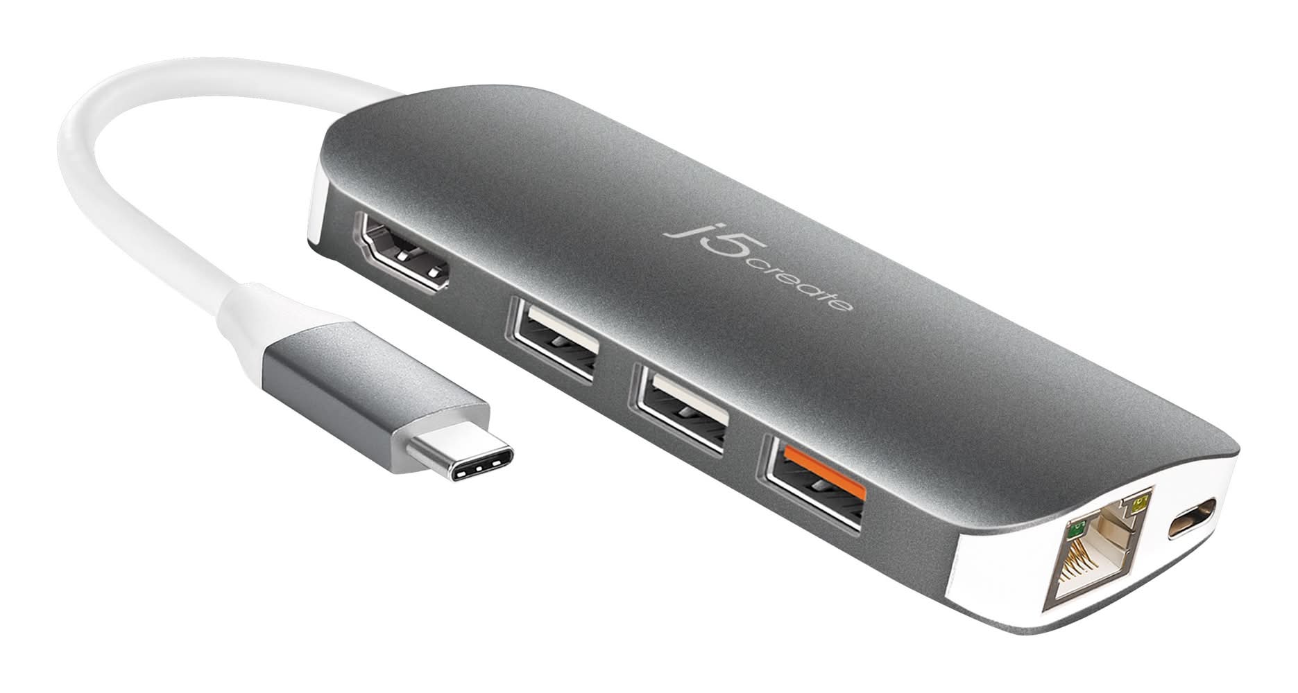 j5create Usb-C To Dual Hdmi Multi-Monitor Adapter, Silver-White