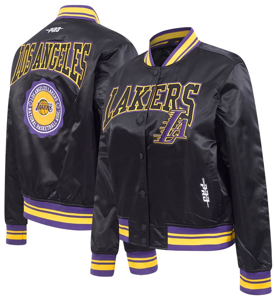 Pro Standard Los Angeles Lakers Crest Emblem Full Zip Satin Jacket, Women, M, Black