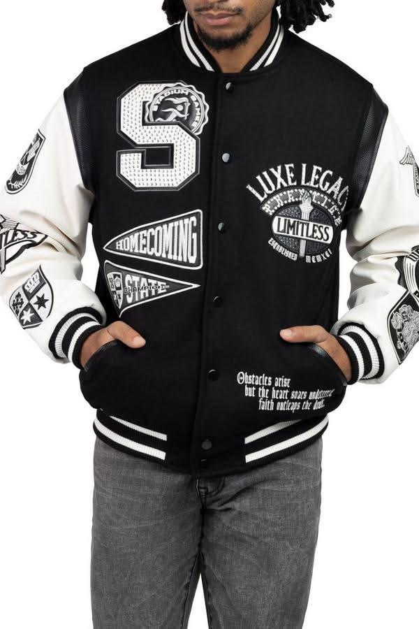 Smoke Rise Luxe Legacy Wool Varsity Jacket, Men, M, Black