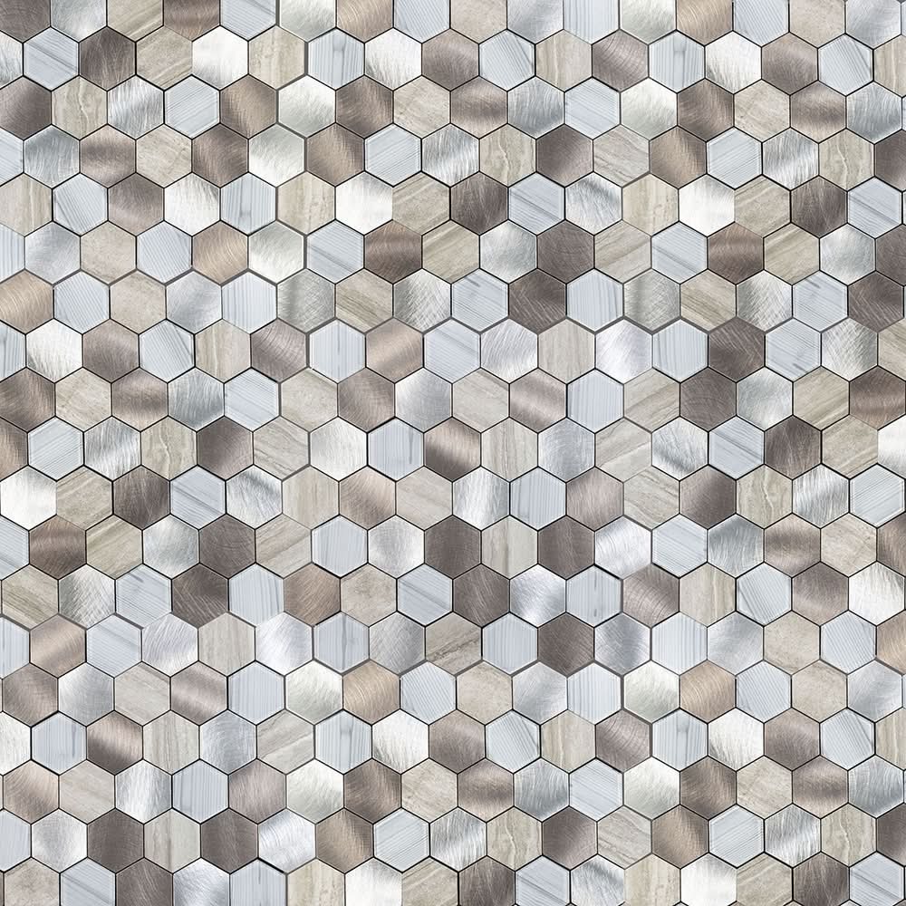 Peel&Stick Tile Pvc Hexagon Mosaic Wall Tile, 12x12 in, Timber Hex