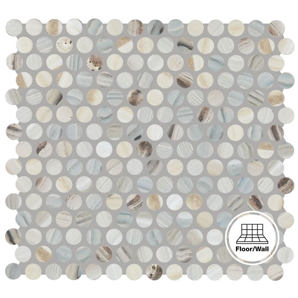 Daltile Lamora Marble Glazed Ceramic Penny Round Mosaic Tile, 11x13 in, Coastal Blue
