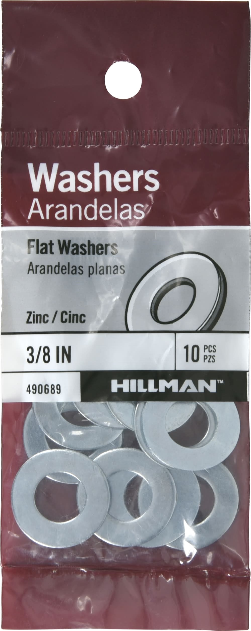 Hillman Zinc Plated Standard Flat Washer, 3/8 in (10 ct)
