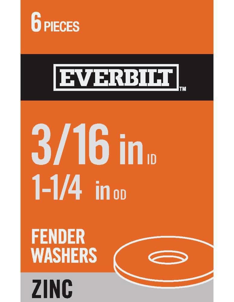 Everbilt Zinc Plated Steel Fender Washers, 3/16x1-1/4 in (6 ct)