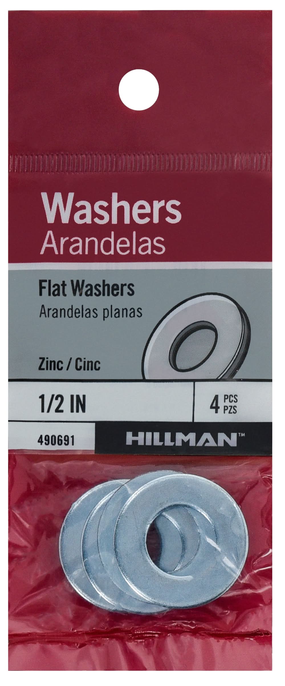 Hillman Zinc Plated Standard Flat Washers, 1/2 in (4 ct)