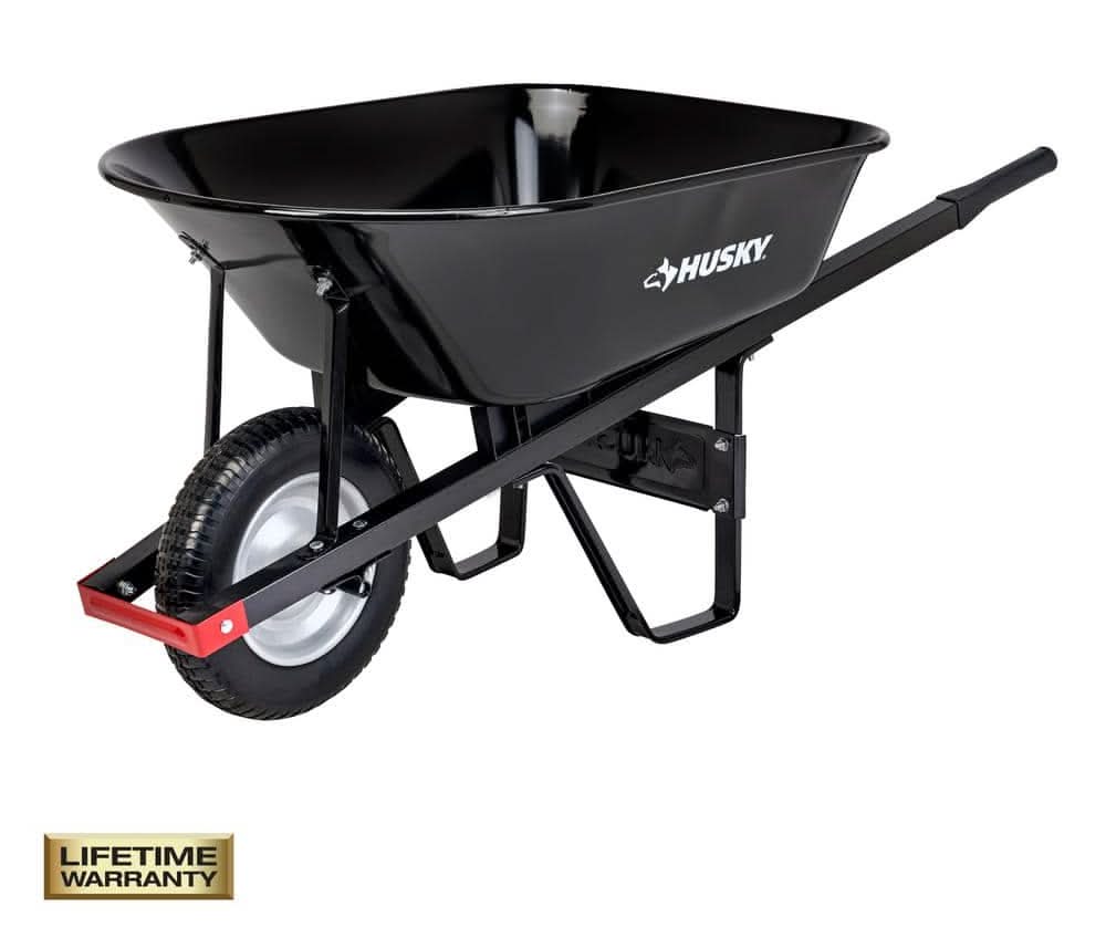 Husky Steel Wheelbarrow With Flat Free Tire, 6 ft