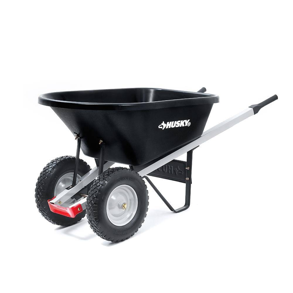 Husky Plastic Wheelbarrow With Dual Flat Free Tires