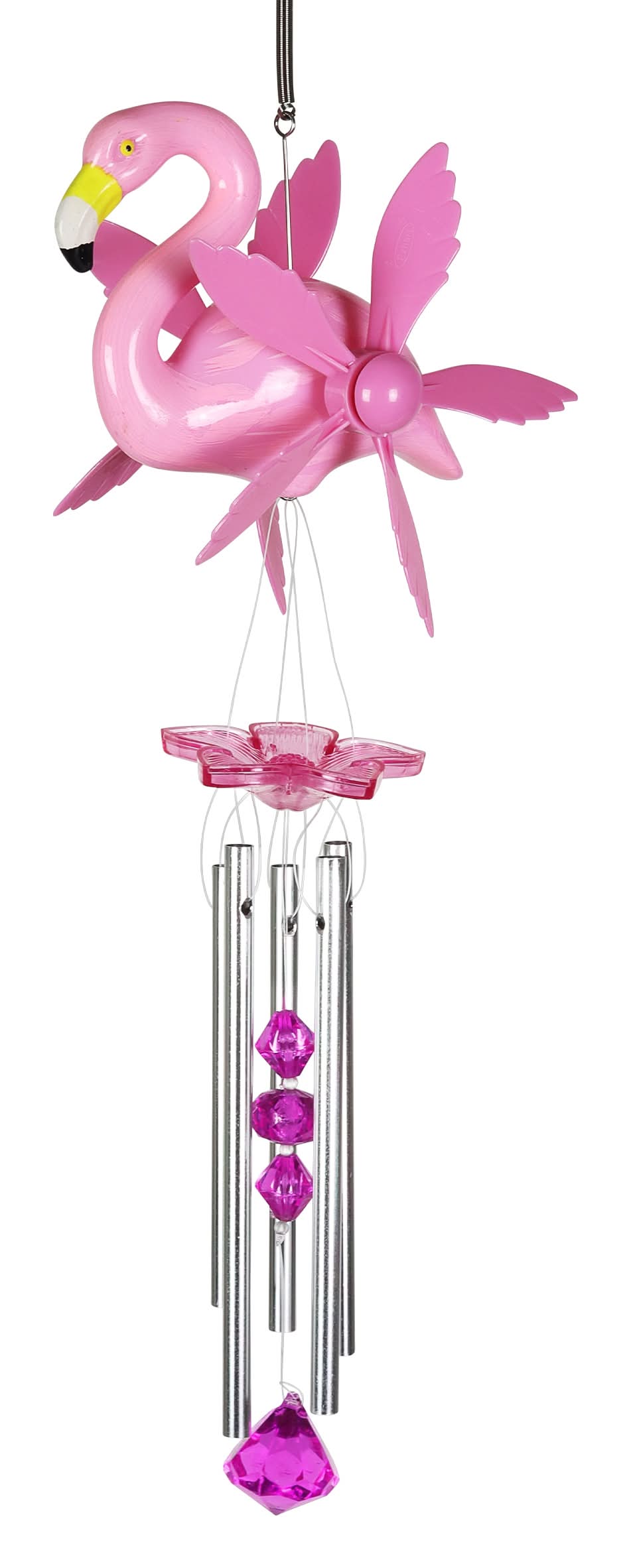 Real Living Flamingo & Umbrella Crackle Ball Wind Chime, 27.4 inch