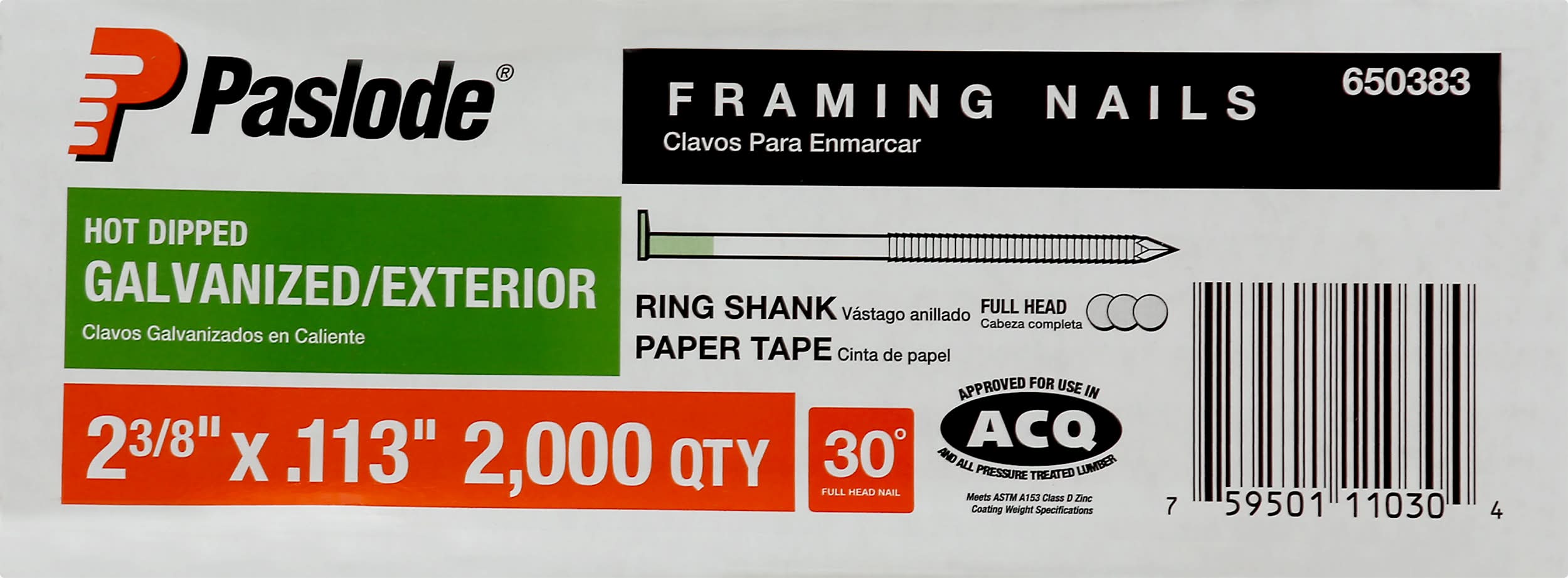 Paslode Framing Nails, 2 3/8 x 0.113 Inches (14.01 lbs, 2000 ct)