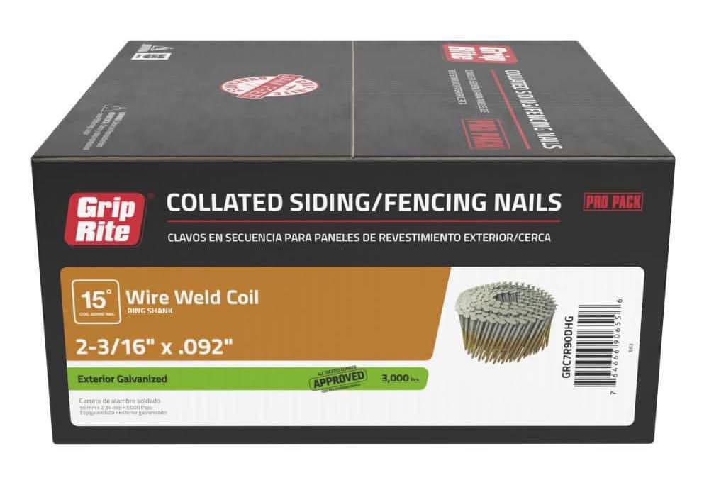 Grip-Rite Exterior Galvanized Wire Collated Ring Shank Nails, 2-3/16x0.092 in (3000 ct)