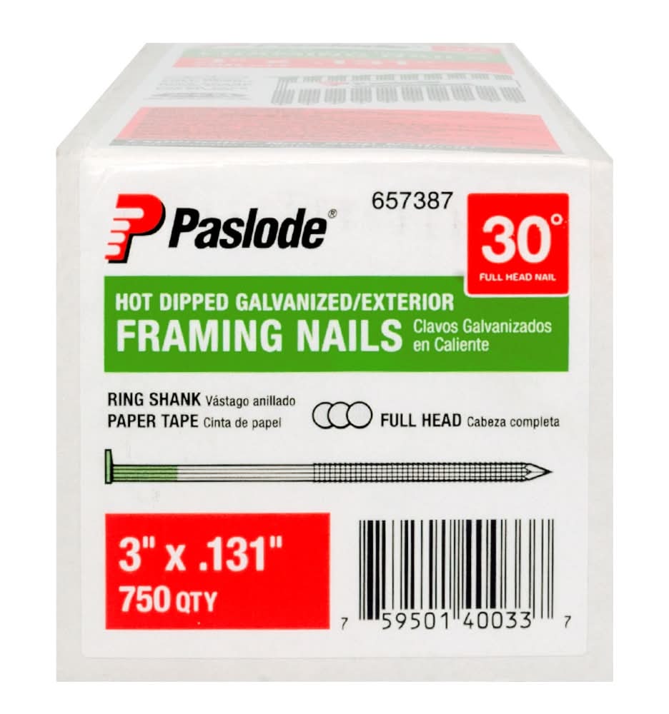 Paslode Hot Dipped Galvanized Ring Shank Collated Framing Nails, 3x0.131 in (750 ct)