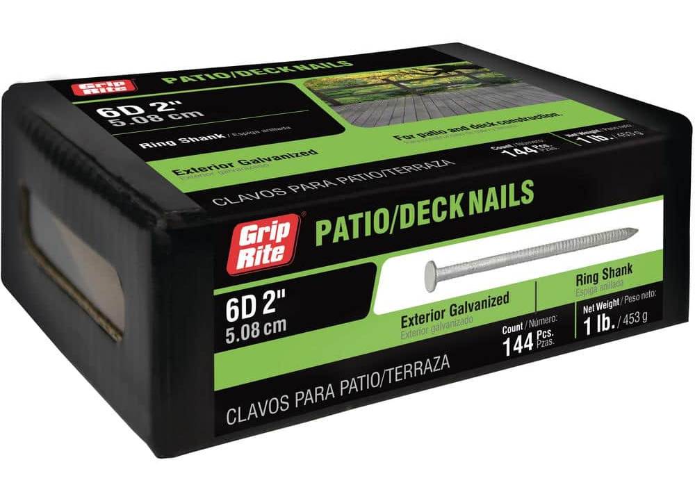 Grip-Rite Exterior Galvanized Ring Shank Deck Nails, 2 in (1 lbs, 144 ct)