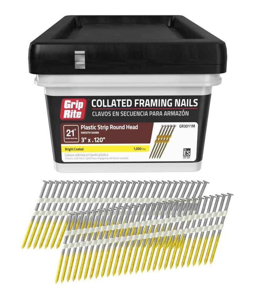 Grip-Rite Plastic Collated Bright Coated Smooth Shank Framing Nails, 3X0.120 in (1000 ct)