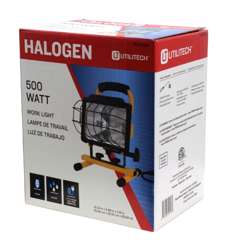 Utilitech Halogen 500w Plug-In Stand Work Light, Yellow