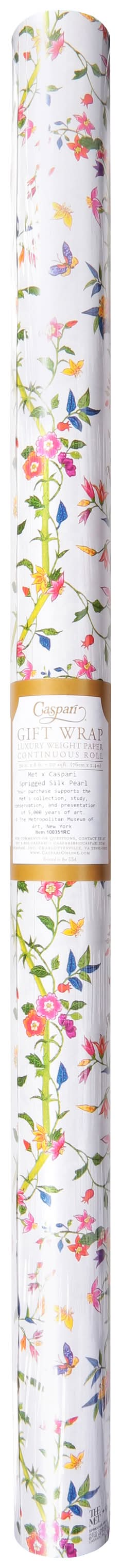 Caspari Sprigged Luxury Weight Gift Wrap Paper Roll, 30in x 8ft, Pearl