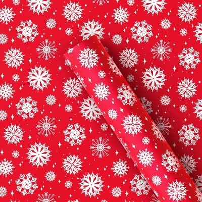 Wondershop Snowflake Christmas Gift Wrap, 220 sq ft, White-Red