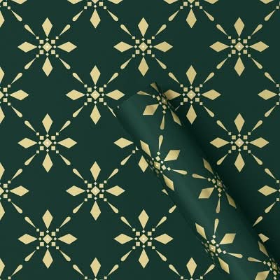 Wondershop Snowflake Christmas Gift Wrap Paper Roll, 30in x 25sq ft, Gold-Dark Green
