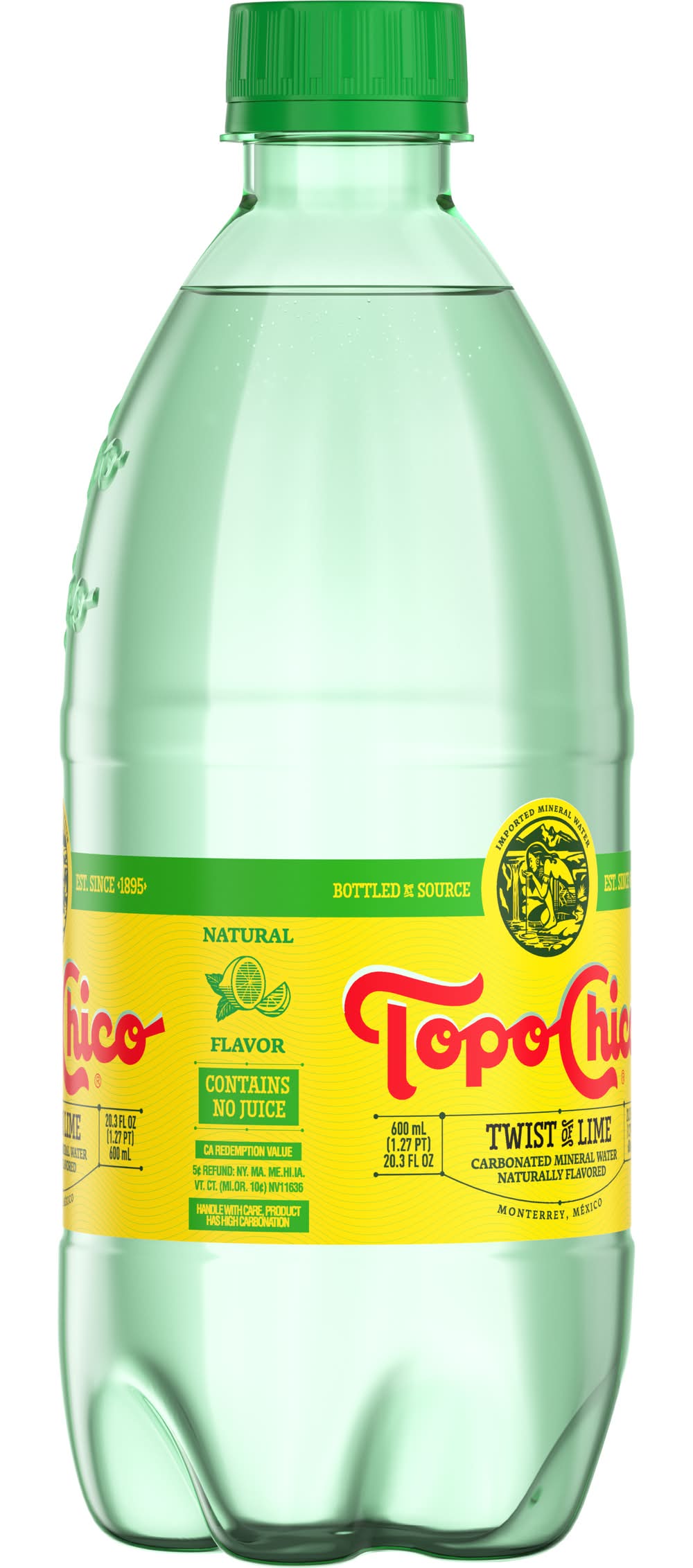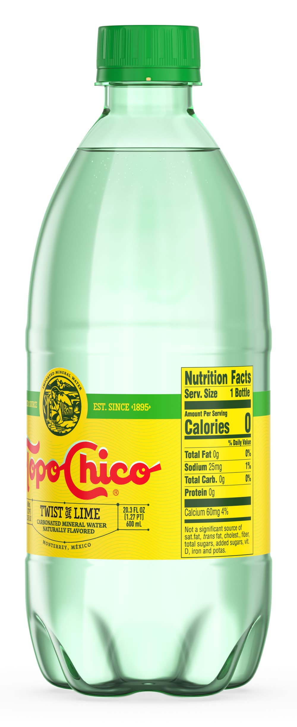 Topo Chico Mineral Water Twist of Lime Bottle, 20.3 fl oz • Flavor: Twist of lime • Number of servings: 2 • Packaging: Reusable