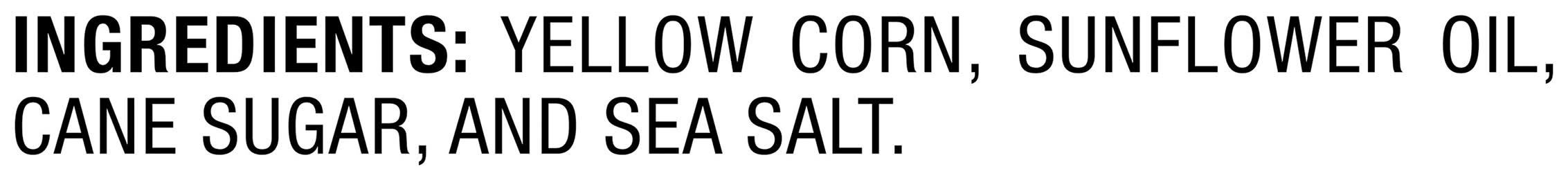 Ingredients: Yellow Corn, Sunflower Oil, Cane Sugar, and Sea Salt.