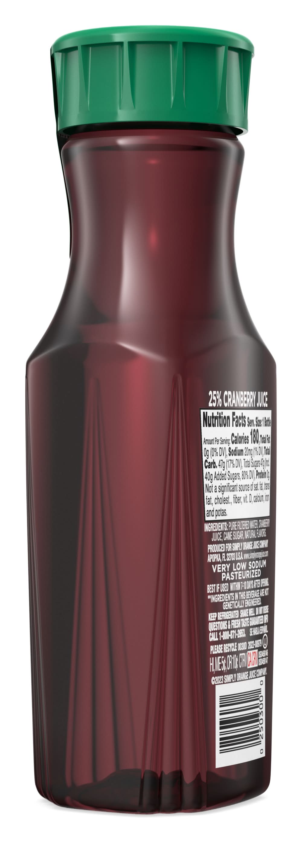 Simply Cranberry Cocktail is a deliciously simple take on the tart and sweet flavor of cranberry juice. Containing 27% cranberry juice and never from concentrate Simply Cranberry Juice Cocktail is made with real cranberry juice and cane sugar with other ingredients to achieve a perfect balance. This all-natural juice beverage is non-GMO and makes for a wonderful taste on its own or mixed with other juices. That’s because it’s perfectly sweet perfectly tart and perfectly cranberry. With Simply Cranberry Cocktail the difference is clear. Clear enough that you can see the all-natural ingredients inside. Because with Simply there’s nothing to hide. • Brand: Simply • Flavor: Cranberry • GMO-free • Simply Orange Juice Company, Apopka,FL,32703 • Packaging: Reusable