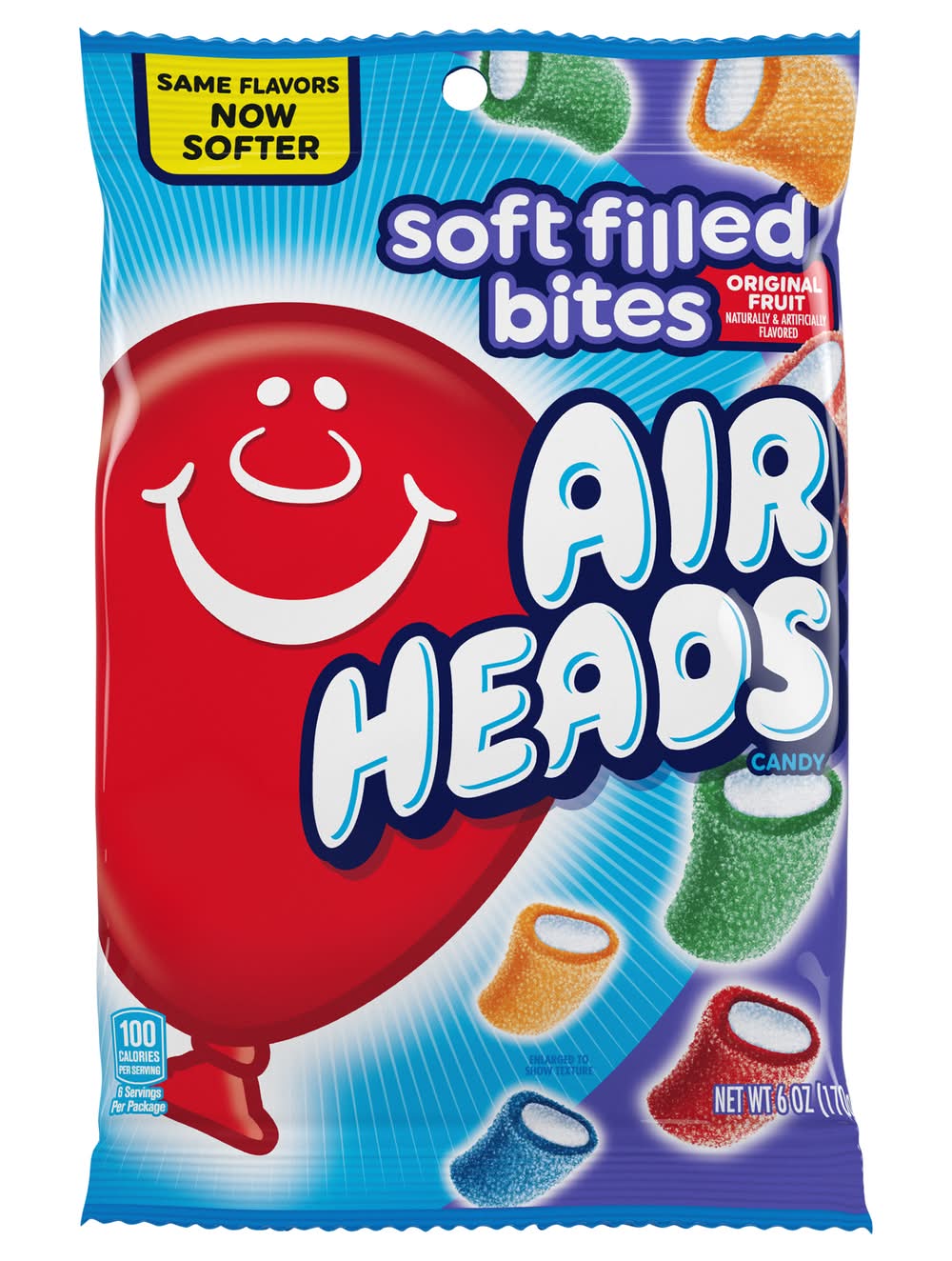 Airheads Soft Filled Bites are filled with assorted sweetly sour fruit flavored bites • Brand: Airheads • Flavor: Original fruit • Airheads, Erlanger, KY