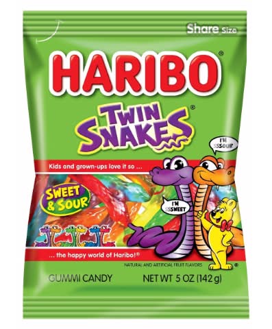 Haribo Twin Snakes Share Size Sweet & Sour Gummy Candy, Fruit (5 oz)