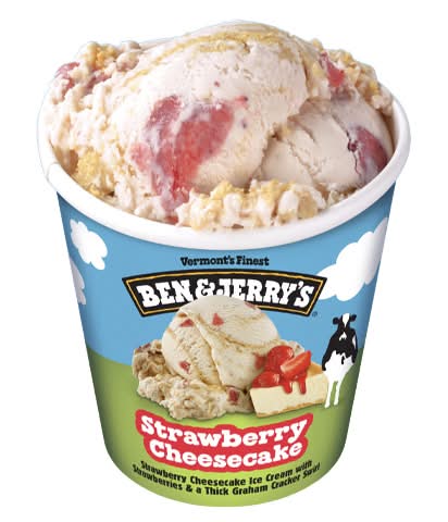 Strawberry cheesecake ice cream with strawberries & a thick graham cracker swirl Vermonts finest. For strawberry cheesecake lovers who've always wanted to have their cheesecake & scoop it too we’ve created a flavor jam-packed with strawberry cheesecake-greatness & a fantastic graham-cracker swirl. Your satisfaction is guaranteed. We strive to make the best possible ice cream in the best possible way. We source non-GMO ingredients, Fairtrade sugar, & eggs from cage-free hens. Learn more at. Get in touch with us! Fair Trade. All sugar is traded in compliance in with Fairtrade standards, total 48% excluding water & dairy. • Brand: Ben & jerry's • Flavor: Strawberry-cheesecake • kosher