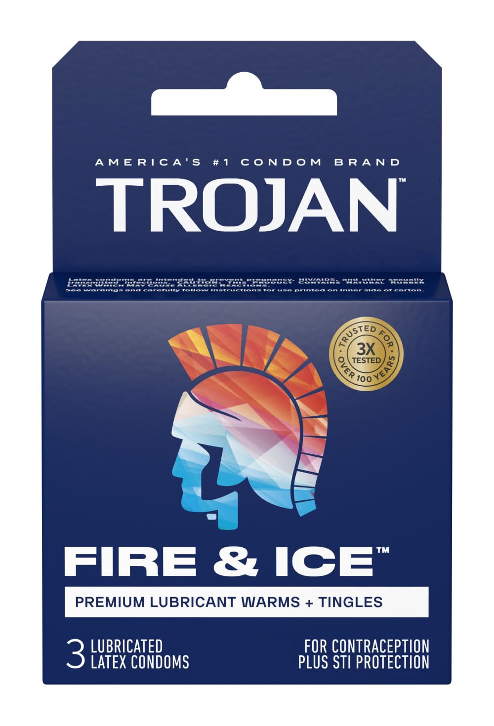 TROJAN Fire & Ice Dual Action Condoms give you and your partner thrilling sensations to heighten pleasure during sex. The dual action premium lubricant inside and out delivers warming and tingling sensations for a more passionate experience – for both partners. They’re made from a premium quality latex and are electronically tested to help ensure reliability. These condoms reduce the risk of unintended pregnancy and sexually transmitted infections (STIs) while you play. For extra safety, there is a special reservoir end. Includes one 3 count box of TROJAN Fire & Ice Dual Action Condoms. TROJAN Brand condoms are America's #1 condom, trusted for over 100 years. The TROJAN Brand promotes a safe, healthy, and fun sex life. From condoms to vibrators to lubricants, TROJAN Brand is dedicated to delivering innovative, high-quality products that offer pleasure and protection. Brand: Trojan