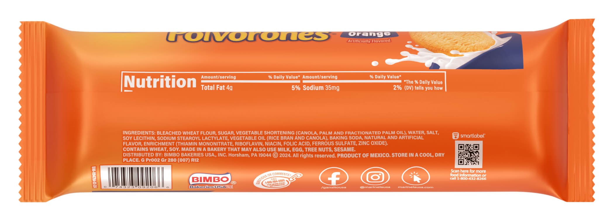 Indulge in the delightful taste of Marinela Polvorones Orange (Individual) Shortbread, 9.88 oz, a product of Mexico that brings a fresh twist to your cookie experience. These unique cookies combine the rich, buttery flavor of traditional shortbread with a zesty orange essence, making them a perfect treat for any occasion. Whether you're craving something sweet during the holidays or looking for a delightful snack, these cookies are an excellent choice, ideal for sharing with friends and family. With their new look but same great taste, Marinela Polvorones Orange Shortbread are versatile enough to complement your favorite desserts or even stand alone as a satisfying treat. Enjoy them alongside your favorite beverages, or savor them as a unique addition to holiday cookie platters that might include gingerbread men, chocolate chip cookies, or oatmeal cookies. Elevate your snacking experience with these delectable shortbread biscuits that are sure to impress. Perfect for gatherings, these cookies also make a thoughtful gift for any cookie lover. Whether you are a fan of cookie chips, custom cookies, or simply looking for a sweet way to brighten your day, Marinela Polvorones Orange (Individual) Shortbread, 9.88 oz offers a delicious option that stands out in the crowded cookie market. • Brand: Marinela • Bimbo Bakeries USA Inc., Horsham,PA,19044