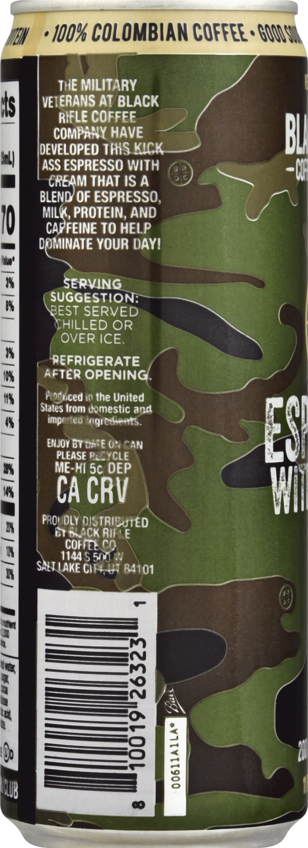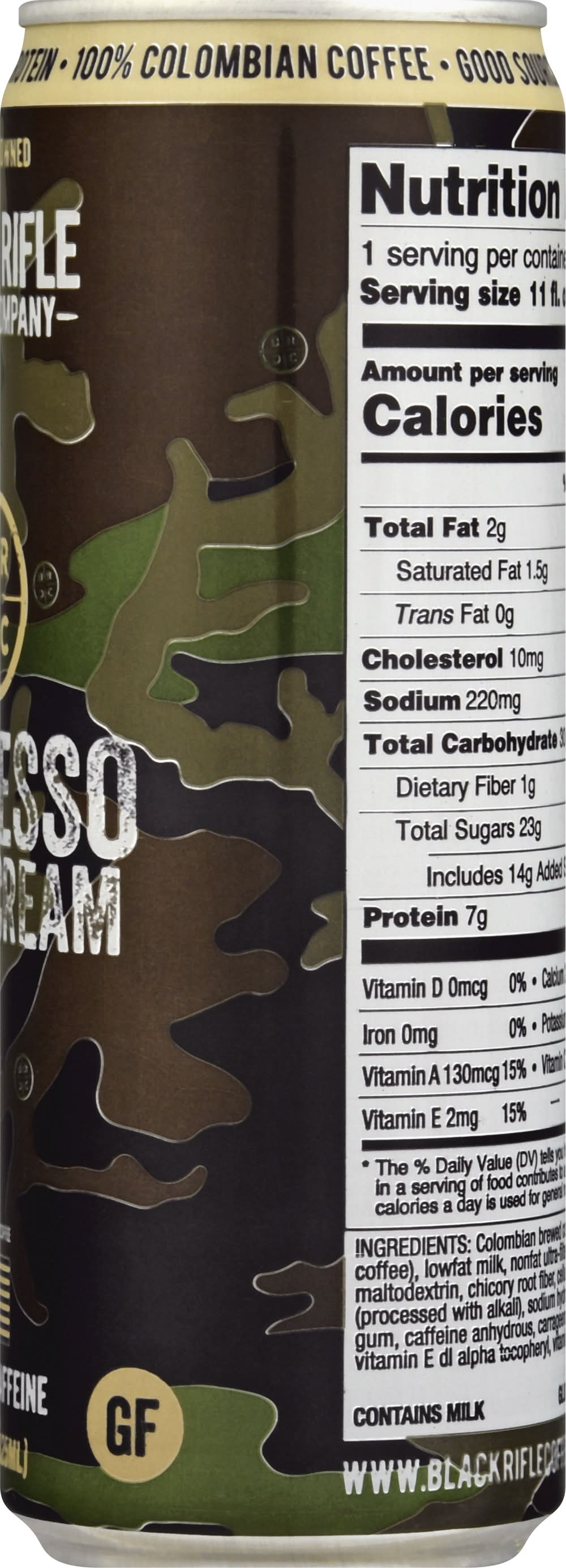 Coffee, Espresso with Cream • Brand: Black rifle coffee company • gluten-free, kosher