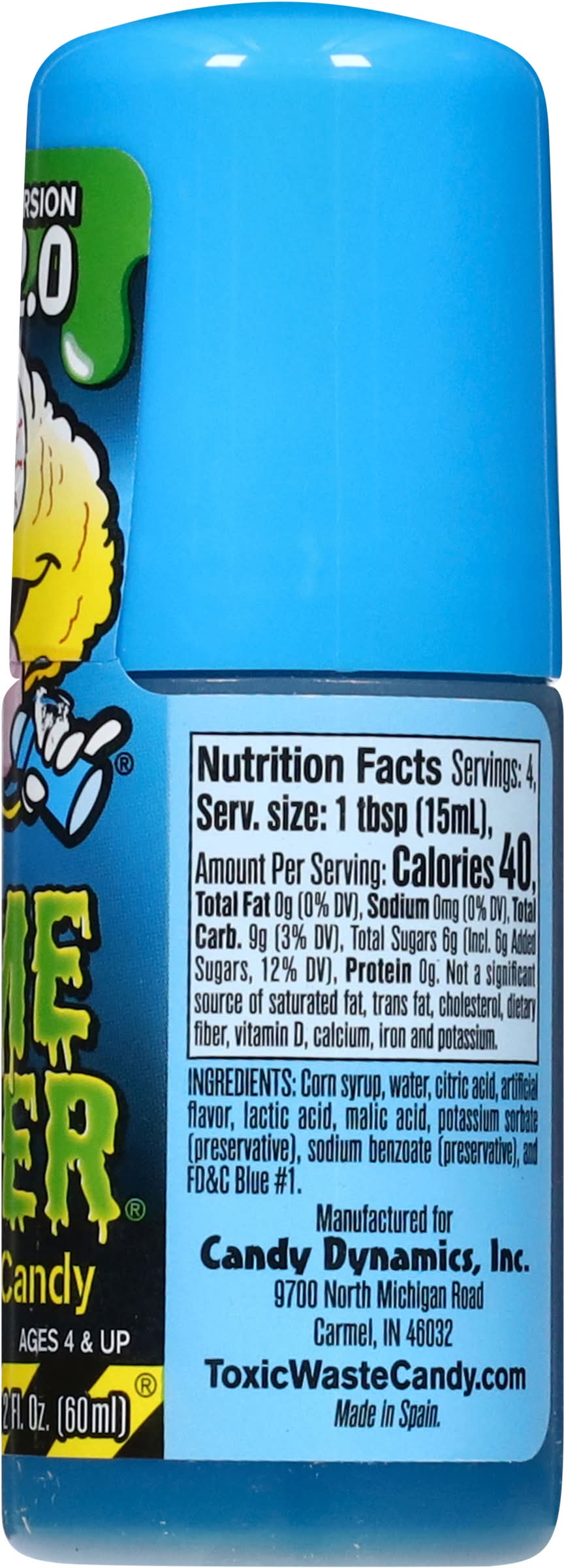 Taste intense fruity & sour flavors in rolling liquid candy. • Brand: Toxic waste • Flavor: Strawberry
