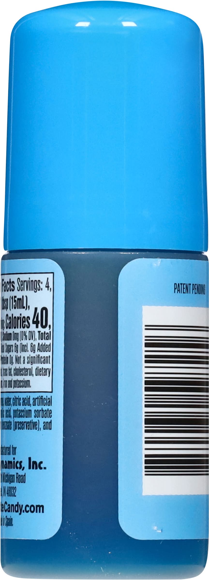 Ingredients: Corn Syrup, Water, Citric Acid, Artificial Flavor, Lactic Acid, Malic Acid, Potassium Sorbate [Preservative), Sodium Benzoate (Preservative), and FD&C Blue #1