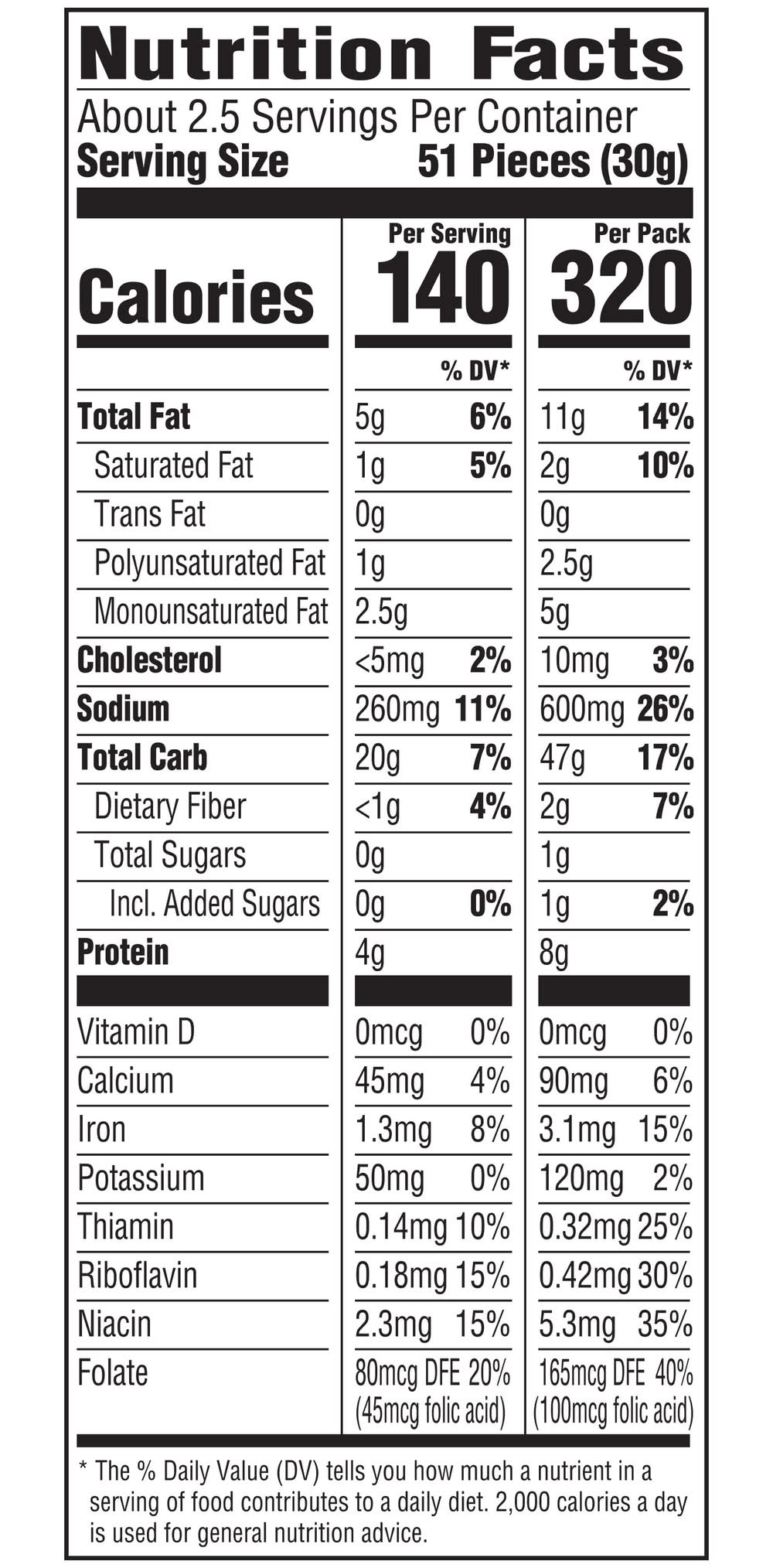 Ingredients: MADE WITH SMILES AND ENRICHED WHEAT FLOUR (FLOUR, NIACIN, REDUCED IRON, THIAMINE MONONITRATE, RIBOFLAVIN, FOLIC ACID), CHEDDAR CHEESE ([CULTURED MILK, SALT, ENZYMES], ANNATTO), VEGETABLE OILS (CANOLA, SUNFLOWER AND/OR SOYBEAN), SALT, CONTAINS 2% OR LESS OF: SUGAR, YEAST EXTRACT, WHEY, CORN FLOUR, AUTOLYZED YEAST EXTRACT, TORULA YEAST, PAPRIKA EXTRACT (COLOR), SPICES, CELERY, ENZYME MODIFIED CHEDDAR CHEESE (MILK, CULTURES, SALT, ENZYMES), ONION POWDER, GARLIC POWDER, CITRIC ACID, LACTIC ACID, CALCIUM LACTATE, NATURAL FLAVOR, MILKFAT, MONOCALCIUM PHOSPHATE, BAKING SODA. CONTAINS: WHEAT, MILK. Contains: Wheat, Milk, Soybeans, Corn, Celery Additives: Genetically Modified Ingredients