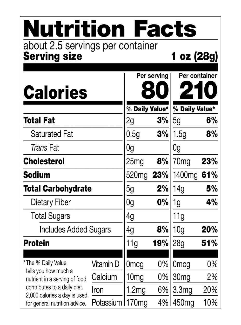 Ingredients: INGREDIENTS: Beef, Water, Sugar, Contains 2% Or Less Of Salt, Chili Pepper, Corn Syrup, Monosodium Glutamate, Flavors, Hydrolyzed Corn Protein, Yeast Extract, Dehydrated Tomato, Latic Acid, Pineapple Powder, Sodium Nitrite Contains: Corn