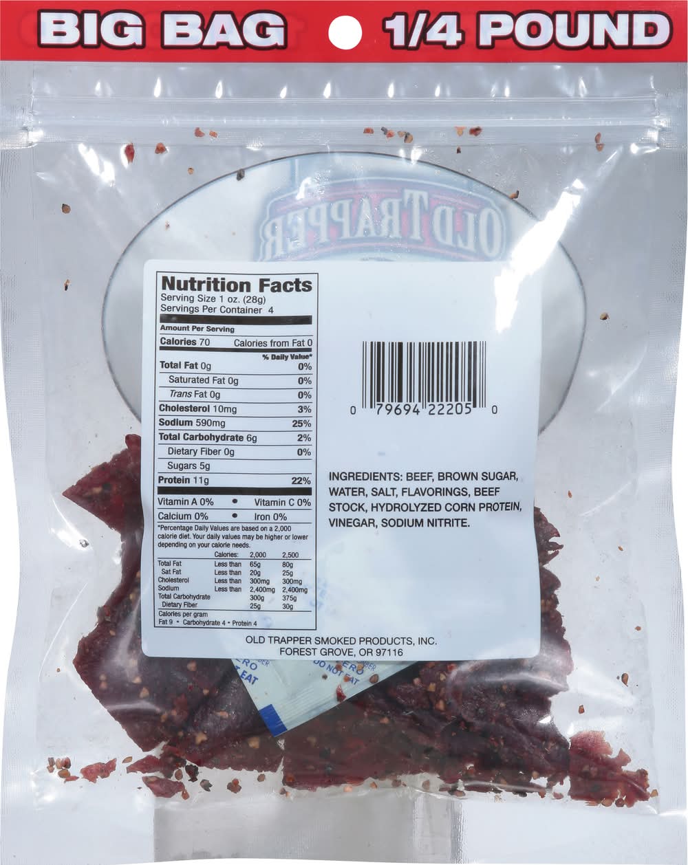 Beef Jerky, Peppered, Big Bag • Brand: Old trapper • Old Trapper Smoked Products, Inc., Forest Grove,OR,97116