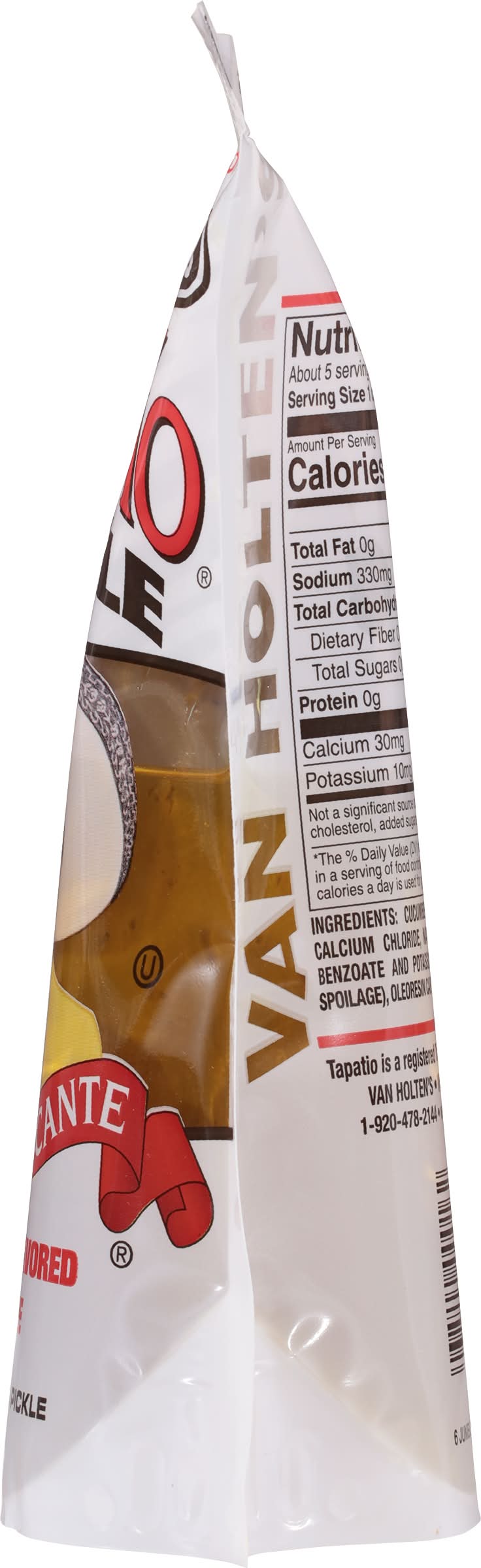 Pickle, Tapatio Salsa Picante Flavored • Brand: Van holten's • gluten-free, kosher • Number of servings: 5 • Van Holtens, Waterloo, WI, 53594, Ph: 920-478-2144