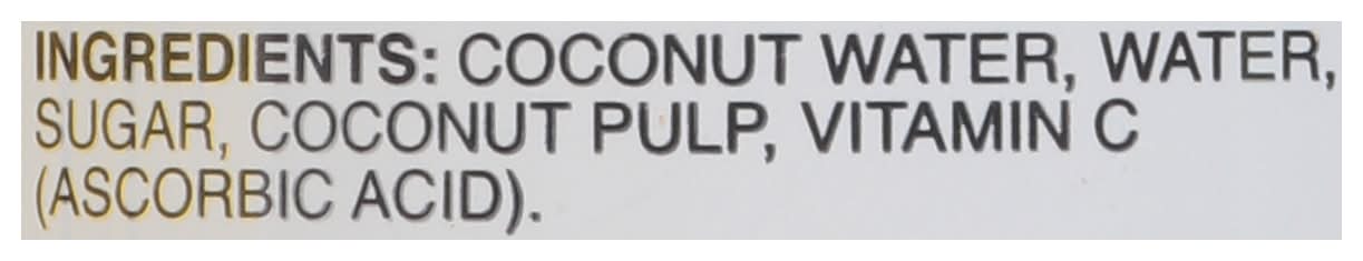 Ingredients: Coconut Water, Water, Sugar, Coconut Pulp, Vitamin C (Ascorbic Acid)